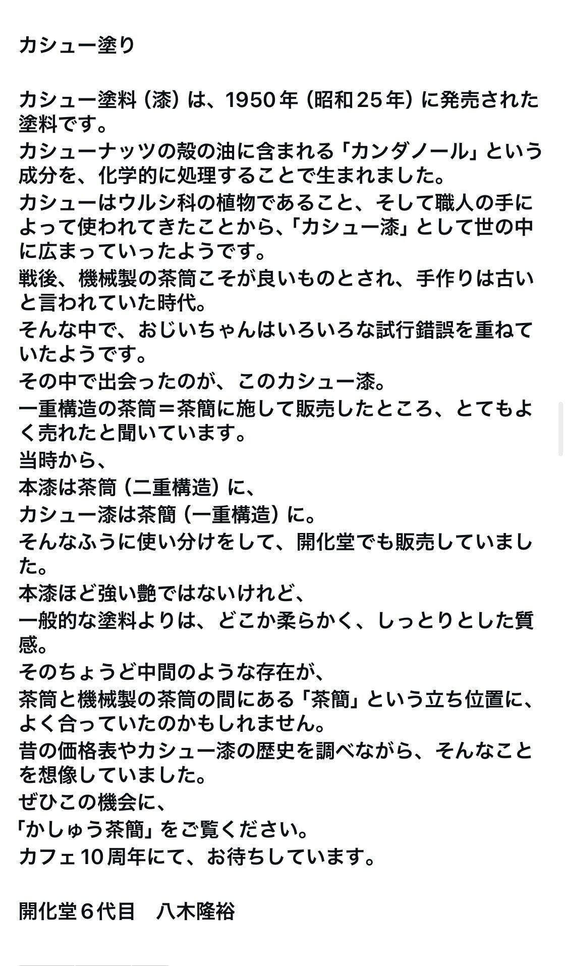 カシュー塗料(漆)は、1950年(昭和25年)に発売された塗料です。