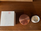 開化堂の筒に辻村塊さん作のぐい呑を入れて